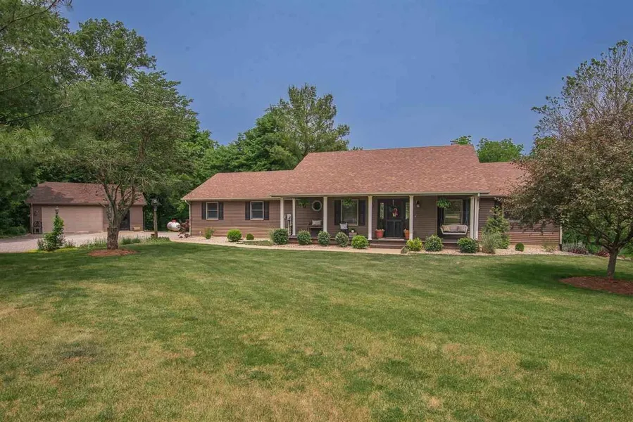 Nestled back on a dead end road near Whitewater Memorial State Park in Liberty is this beautiful 3 bed 2.5 bath ranch with a basement on over 13.05 acres. The 30 ft. wrap around porch is absolutely stunning with a porch swing inviting you into the front door. The great room features an open concept with the dining room, living room, and kitchen. With an abundance of natural light shining into the living room you will see a wood burning fireplace and access to the outdoor 2nd level balcony. The kitchen features quartz countertops with all appliances (stove, refrigerator, dishwasher, disposal, built-in microwave), and also conveniently attached to the laundry room with a half bath leading out into the attached, insulated 2 car garage. The primary bedroom is located on the main level with a large walk-in closet and full bath. The walk-out basement consists of 2 additional bedrooms, office, and family room featuring a wood burning stove. Out onto the patio you will notice an outdoor shower, bonfire pit, custom made wood burner pizza oven, and views of the natural oasis woodland scenery. The heated and insulated detached 2.5 car garage has a very nice workshop inside that would be great for woodworking or projects. This property is perfect for those who love being outdoors with privacy, approximately 11 acres of woods for trails and hiking, and the convenience of being close to Brookville Lake for those with a watercraft or who just enjoy going to the lake. Not only would this make a great primary residence for your own personal oasis, but potentially a great Air B n B or short term investment property. Too many features to list for this one of a kind home with a beautiful setting and high end finishes; you won't be disappointed! Contact FOUST for your HOUSE at (765) 967-3051 for more information! Text 963017 to 35620 for more information and photos.