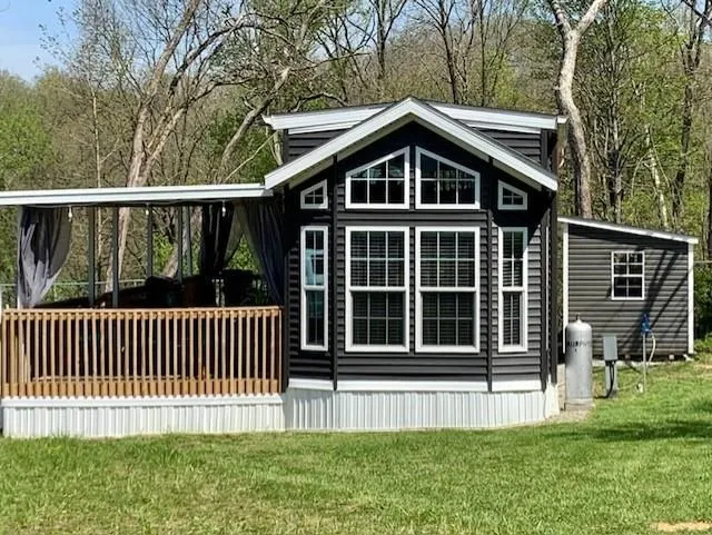 Spectacular seasonal property in a great location in Heritage Hills Campground close to Brookville Lake, IN. This is the perfect place to call home after a fun day on the lake! This luxurious 2018 Woodland Park park model offers the comforts of home. Lots of sleeping space for family and guests. 20 X 30 garage can store your boat, water toys and golf cart. There is a shed that is currently used for crafting but could easily be converted for other use as your own private space! The covered deck is so inviting and relaxing after a long day on the lake. This property is perfectly located for the 4th of July fireworks display viewing! This is a rare find and won't last long! Showings will begin on October 22nd, 2023. Get a jump start on next season, call or text Rebecca today @ 303-886-7954 to see this amazing property! Extended warranty until April 15th, 2026.