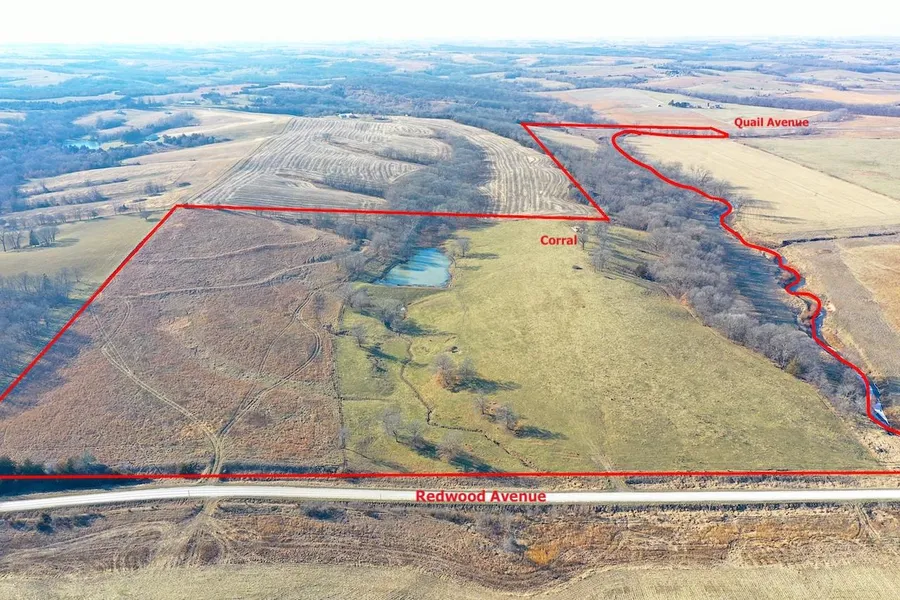 The eastern side of this property is located on Redwood Avenue and the western side is located along Quail Avenue. This is a nice mixed-use farm with 21.62-acres enrolled in CRP and the balance being a mixture of Pasture and Timber. A creek runs along the north boundary of this property allowing a perfect corridor for wildlife to travel.