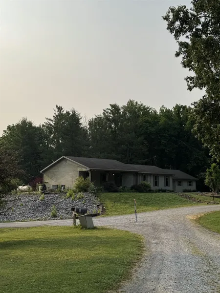 This property sit on acreage with woods and 3 bay open front pole shed. Lots of room. Provate bath off main bedroom. Large eat in kitchen living room floor plan. Very rural setting. Propane tank stays with home. Lare Laundry room. Extra rooms for what ever purpose you desire. Breeze blows across front porch all summer long. Motivated seller Must see to appriciate the potential. New survey No mineral rights.