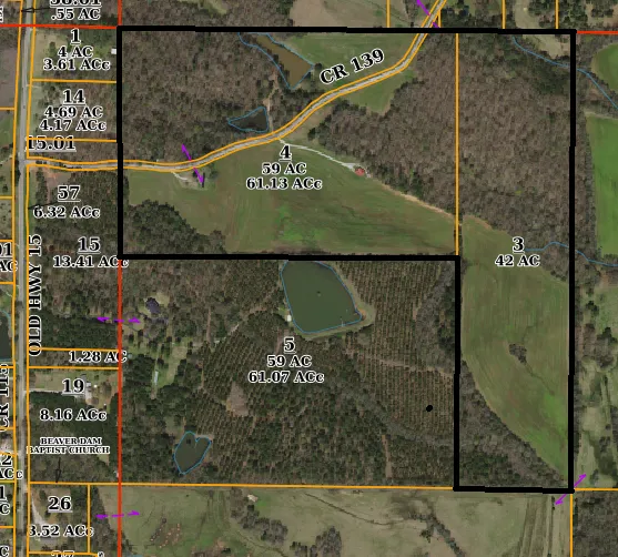 Research Parcel InformationNorth on Hwy 15 from New Albany for 2.35 miles, turn right on CR 137, and at 3-way stop turn left on CR 115. Go to your second CR on the right will be CR 139 and property will be down on the left & right . Signs on the property.