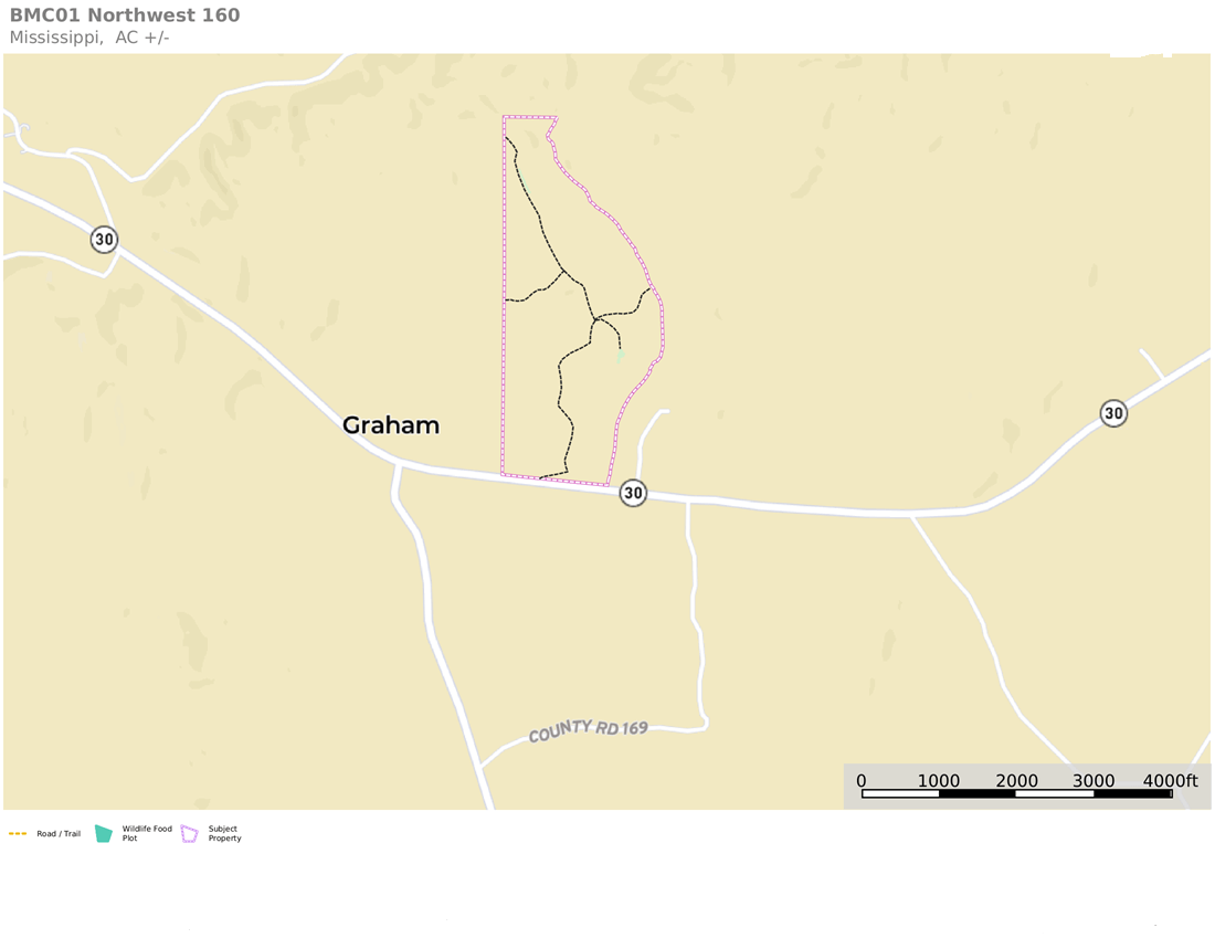 From the intersection of County Road 169 and Mississippi Highway 30 East in the Graham Community, head west on Mississippi Highway 30 East for approximately 0.25 miles. The entrance will be on your right, with frontage along Mississippi Highway 30 East. The property lies on the north side of the highway.