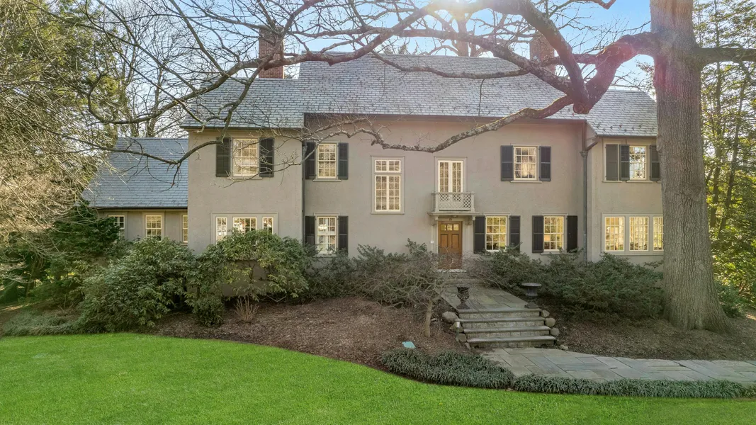 Majestic 1921, stucco Six bedroom four bath Northside Colonial situated on over an acre of private level yard. Completely renovated throughout including newer windows, HVAC, plumbing, and electric. Sophisticated chef's kitchen with oversized tumbled marble island, separate eating area, sitting area with gas fireplace and workstation. Mudroom with slate stone flooring and cubbies. Access to bluestone terraced patio and Lynx gas grill with stone surround and exquisite rear yard retreat. Three-car detached garage with oversized driveway and extra parking spaces. Outdoor Lutron lighting and Atlantis sprinkler system and bluestone walkways. Expansive lower level with recreation room, laundry, media room, playroom, game room with gas fireplace and wet bar and powder room. Hardwood floors throughout.