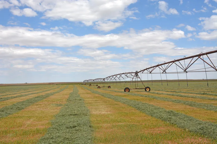 This 1,601.69 +/- acre farm/ranch is located in the southeast part of Union County, New Mexico approximately four miles west of the Texas/New Mexico State Line on paved New Mexico Highway #421 (Texas Highway #102) to Perkins Road (County Road #CO51) thence south on Perkins Road three miles to the northeast corner of the property continuing on south one mile and ending at Proffit Road which runs east/west and which separates the 640 tract from the 960 tract or five miles west of the New Mexico/Texas State Line on paved New Mexico Highway #421 (Texas Highway #102) to Sedan, New Mexico thence south three miles on Callus Road (County Road #CO50) to the northwest corner of the property continuing on south one and a half miles along the west side of the property. The property has five circles equipped with five tower Reinke center pivot sprinklers that were erected in the mid 1990s. The current manager of the property believes that these two and a half sections were tied together with underground pipe at one time but has no knowledge of the location of the tie-ins and assumes they are not functional. The north section of the property has one quarter section of dryland, three circles and three irrigation wells which are tied together with underground pipe and equipped with submersible electric motors, pumps and control panels. The half section south of the north section and located south of Profitt Road is in native grass with a domestic well, one irrigation well equipped with a 2 submersible electric motor, pump and control panel and one abandoned well. Current management has not operated any of these wells. The section to the east of the half section of grassland has a half section of dryland, two circles and three irrigation wells tied together with underground pipe and equipped with submersible electric motors, pumps and control panels producing water for irrigation. Additional improvements on the property include mostly four strand barbed wire fencing around the perimeter with swinging pipe gates and a straight wall/wood frame metal shop/barn (approximately 48 X 36) with electricity, two rollup doors (approximately 10X 12) in the south end of the barn and a sliding door (approximately 15wide and 14 tall) in the north end of the barn for ingress in and out of the building above the underground surface pit in the concrete floor to change oil, etc in vehicles and an office (approximately 15 X 15) with an almost finished bathroom built into one corner of the barn. The additional Sedan East Irrigated Farm & Grassland containing 1,120 +/- acres is located just three and a half miles from the property and is also available for purchase. This property alone or the two combined properties 2,720 +/- total acres would make for an excellent small grains/grazing operation!