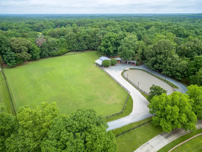 Break Away Farm. Your natural living journey begins in the Valley Farm Community, a peaceful equestrian setting near Waxhaw and Wesley Chapel, North Carolina. Tucked away in this private site is Break Away Farm, a 10+ acre manicured estate. With a backdrop of horse farms, this property is an ideal gentlemans farm, designed and maintained to accommodate any number of dreams and uses. Bring your favorite animal(s), and begin your journey. This modern home has an old-world ambiance grounded in its sundry warm spaces, connecting living areas, assortment of fireplaces (four including the master suite), and several private get-away spots. With an eye to outdoor living, a screen porch is open to the great room, office and breakfast area and a large deck adjoins the master suite and great room. Combining casual living with formal, the walk from the multi-purpose mud room features a dining room well suited for those special holiday events, a gourmet kitchen and adjacent breakfast space, on to the living room, an ideal quiet time room next to the great room, well designed for more spirited events, and culminates in a private, spacious master suite. The kitchen is a model of efficiency and grace; the profession grade stainless steel appliances make preparing a snack or a gourmet meal a simple task. The generous master suite wing offers a fireplace, built-in bookcases/cabinets and a spa-like bath, including a claw foot tub surrounded by windows. In addition to the master, the 3,771sf home has three guest bedrooms upstairs and access to a copious amount of attic storage space. One of the bedroom suites offers extraordinary privacy; the primary access from stairs located in the rear corridor near the mud room. Additionally, there is a second living quarters with full bath and kitchenette over the garage. A two-car garage features a self-contained, heated and air conditioned shop that would make Tim Taylor or his arch enemy Bob Vila envious. The old-world ambiance is particularly evident in the grounds surrounding the home. Mature hardwoods, landscaping with stone walls, walkways and private gardens, landscape lighting and a nature preserve backyard all support the estate designation. A gated entrance with large stone columns further points to the fact that this is a special place. The care and stewardship of the property by the current owners is evident everywhere you look. To accommodate your horses and/or other animals are four pastures/paddocks, 4-stall barn with hay loft, run-in shed and 4-bay equipment shed, and a lighted 50 x 125 arena with sprinkler. Should horses be your dream, in addition to your own trails, you can access trails adjoining the property; Mineral Springs Greenway is nearby as well as the 1,100 acre Cane Creek park, both with an abundance of riding trails. Located just minutes from the quaint village of Waxhaw the area is highly desirable, both for its growth and charm. It is an area rich with history, named for the Waxhaws, the indigenous Native American tribe that lived there prior to colonial settlement. The Howie gold mine was located just outside the current town limits. The mine was active for approximately a century and at its closing in 1942 the mine produced two thirty-pound gold bricks each month. Modern exploration shows gold deposits in the area, who knows what you may find? Andrew Jackson, soldier, statesman and seventh president of the U.S. was born in the area. His exact birth place is the still the subject of debate; regardless the region was home to this colorful American hero during his youth. The region is a rare place that honors the past, respects the present and plans for the future. A premium is placed on natural space; come find yours at Break Away farm, 2705 Valley Farm Road, Waxhaw, NC.