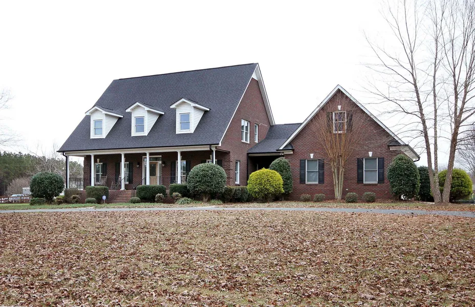Enjoy outdoors on the rocking chair front porch, breakfast porch or back deck. Two generous board fenced pastures and a turn-out paddock can be expanded to include two additional paddocks. Utilize the goat paddock with goat house for just that purpose or make it a chicken yard, dog yard or third horse paddock. It is obvious an equestrian designed the 7 stall brick barn. It is ideal for either a private barn or boarding barn. Each of the stalls has mats, hay feeders and individual flood lights. Work with two horses at a time, one in the wash stall and one in the tack up stall. A large climate controlled office can double as a lounge. It is completely finished and has hardwood floors, a tiled laundry room and full bath. There is a separate tack room, as well as, a separate feed room. Hay can be easily accessed and stored in the hay loft. Equipment and/or shavings can be stored in the separate equipment garage. Attached to this is a large run-in shelter for one of the pastures. Give lessons, take lessons or train in the large arena. A combination of screenings and mortar sand, make this a safe environment for your horses. Cool your horses off, after working them, on the trails on the back couple acres.