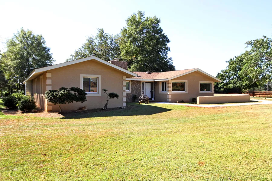 Enjoy views of the horses grazing in one the three pastures from much of the home. While not in the pastures the horses can enjoy the comfort of the three stall barn. The charming barn includes a covered trailer parking area, tack up area, hay loft and large tack room/office with a covered porch. A large level area is ideal for a future arena or the perfect garden site. Enjoy the offerings of the Muscadine Vines, Pecan, Pear and Walnut trees.