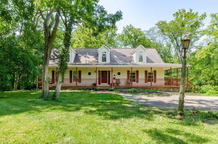 Situated on a wooded lot with a small stream to the back of property. 4.21 acres of land with 2800+ SQFT of living space. New well water tank, new hot water tank, new AC unit, new lighting fixtures, new fans and new faucets. Floor plan has 1st floor owner's suite and laundry. Attached 2 car garage in back of the house. Fully walk-out basement and huge walk around deck covering most of home. Amish shed. Come and turn this into your private retreat! Don't miss this opportunity!