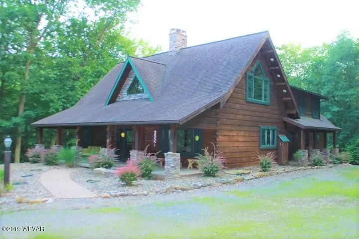 Stunningly beautiful, custom built Timberhaven Log Home! Secluded on 10 private, wooded acres. Gorgeous kitchen with granite countertops, island, and upgraded appliances. Features include cathedral ceilings with 2 story stone fireplace, 1st floor master suite, large heated family room/sunroom, office, laundry room, finishable lower level with high ceilings and insulated walls, high efficiency heating system, central vac, and well designed accent lighting throughout house. Second floor offers large loft/family room space overlooking living room, 2 large bedrooms, and a full bath. Enjoy the serenity of this special property from the wide and welcoming front porch or rear deck. Call Anne Steinbacher at 570-772-5871 to schedule showing.
