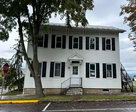 Centrally located and close to schools this newly remodeled 3-4 bedroom home has so much to offer with the new kitchen and remodeled baths. First floor primary bedroom suite plus another room with built in bookshelves can be used as a bedroom or office. The interior is freshly painted throughout. Some windows have been replaced. Open floor plan, large 2nd floor laundry room, 2.5 baths, central air throughout. 1 car garage and paved parking area at rear. Corner lot and close to school Call Karen today 570-971-0305 to schedule your personal showing.