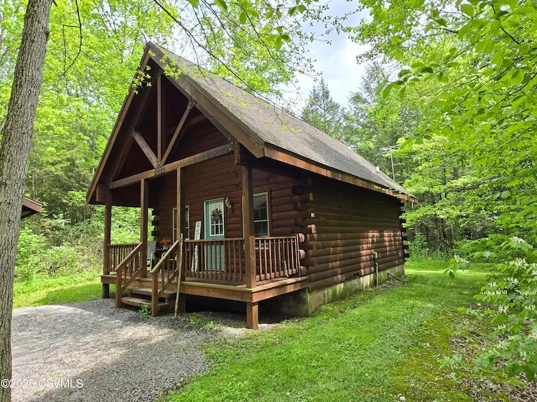 ALL OFFERS DUE BY SATURDAY, JUNE 7TH AT 9AM. Experience the charm of this stunning log home on 4 acres. Tiny Home Living, this could be it. Relax on the spacious front porch and enjoy peaceful moments. The property includes a convenient large detached 1-car garage. The home features a large loft bedroom with the potential for a second bedroom on the first floor. Currently utilized as an Airbnb, it's just minutes from Historic Mifflinburg (Buggy Town), excellent trout fishing, RB Winter State Park, and an hour from State College, PA. This rare opportunity offers a private country setting in a rural Mifflinburg location while being close to town and many recreational possibilities nearby. Call Doug Wertz for a private tour 570-713-9961 Showings start June 3rd.