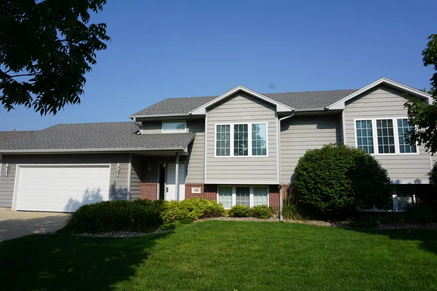 Very well maintained 4 bed, 3 bath home with walk out basement in the Prairie, backing to green space near Prairie Park. You will love the engineered flooring in the main living area, plus owner has updated kitchen cabinets, installed new back splash, installed new carpeting, and stainless kitchen appliances are less than one year old. Living room has vaulted ceiling and is open to dining/kitchen. Sliders off dining lead to a raised deck overlooking the spacious back yard. Master bedroom/master bath on main, plus second bedroom with main floor laundry hookups and a full bath. A great family room with electric fireplace has sliders to rear patio, two large bedrooms, a full bath and laundry/utility comprise the lower level. New shingles and gutters were installed in the last two months. This is a great home at a great price in beautiful Dakota Dunes!