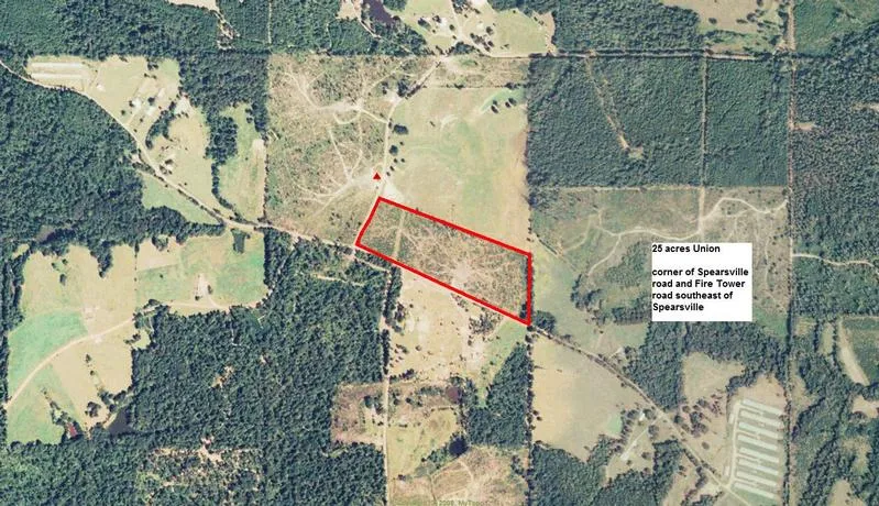 Directions: From hwy 15 north of Farmerville, take hwy 550 west for approximatewly 1.75 miles. Turn right (northwest) on Spearsville road. Go approximately .5 miles to corner of property on right. Turn right on Fire Tower road to view west boundary of property. The tract lies to the north of Spearsville road and to the east of Fire Tower road. Look for "For Sale" signs and orange flagging. See aerial.