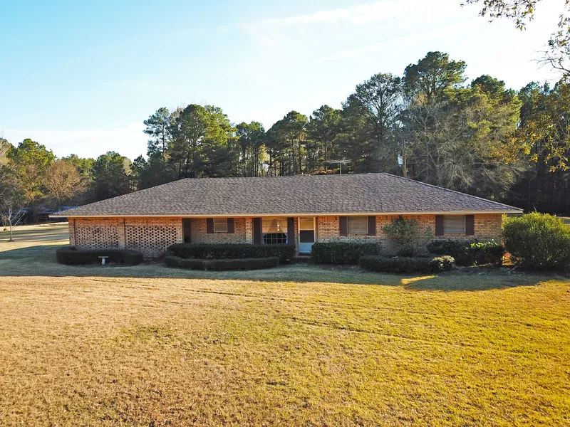 Beautiful 48 Acres on a hill in Rocky Branch with cozy brick home 3 Beds 2 Baths, Fireplace, large covered patio, barn, other out bldgs, RV Cover, two stocked ponds, Horse pasture...absolutely breath taking...some awesome mature standing timber...you snooze you lose on this one...take a look...