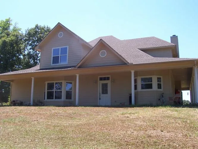 Master Bedroom Split with large Master Bath that has Two Vanities. Jacuzzi tub and Separate Shower. Upstairs, there are 3 Bedrooms and Bath. The 5th Bedroom currently being used as an office is on first floor with 3rd bath in hallway. Nice Laundry Room. Two Hot Water Heaters. Two Air-conditioning Units. Underground Utilities! Nice Large attractive tall carport located at rear of home. Great styling. Home sits on hillside and overlooks part of the land below. Nice pasture land with improv...