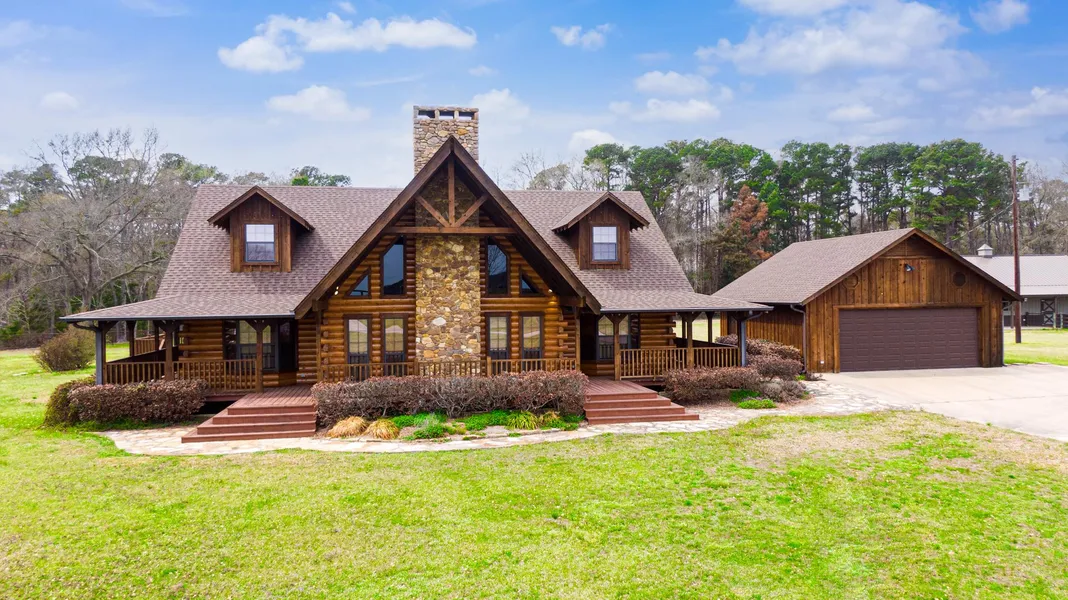 Luxury & Rustic Beauty abound in this 2800 square foot Log Home located on 4.592 Acres in the sought after Harmony ISD. This must-see two story, 4 bedroom, 4 bath Log Home is tucked away in the quiet and serene beauty of rural East Texas. If you love entertaining or spending time outdoors, this stunning gem is just waiting for you to call it home. When you enter the front doors, the large vaulted ceilings open up to the kitchen, dining and second floor. The home features a breathtaking custom stone fireplace, spacious kitchen with double ovens, propane stove top, granite counter tops and wood floors throughout. All 4 bedrooms have en-suite baths. The exterior of the home has wrap around covered porches, perfect for sitting and enjoying the rural setting and gorgeous sunsets. The home features a Generac generator that runs the entire home if power is out. The detached two car garage inclu...