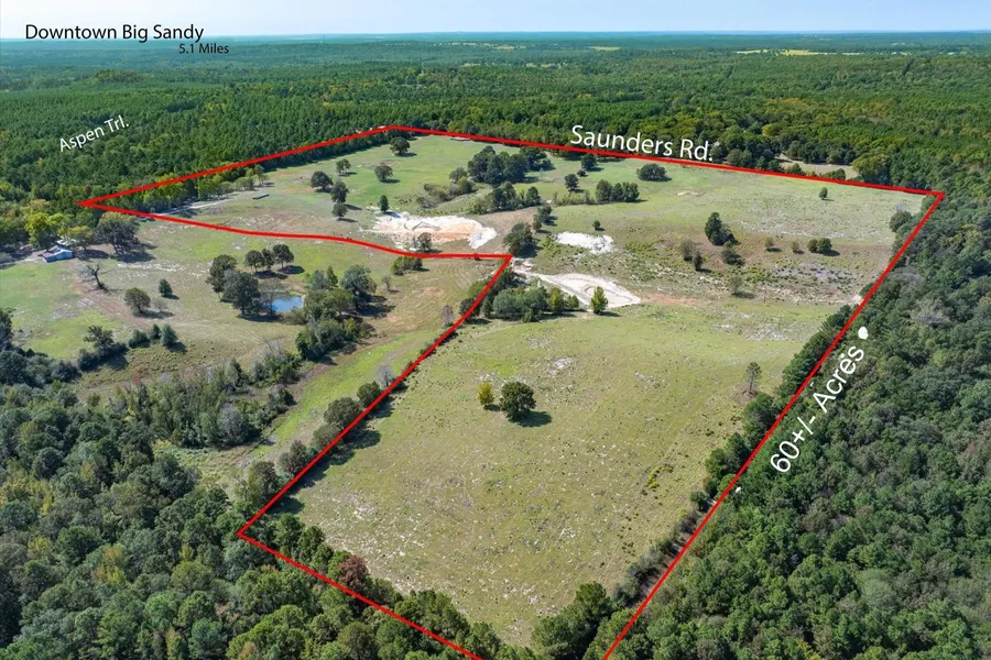 From Big Sandy, head north on State Hwy 155 aka N Tyler Street toward W Groves Street. Continue on State Hwy155N for 4.1 miles, Turn left onto Spruce Road and proceed for 0.7 miles, Turn left onto Aspen Trl, then turn left ontoSaunders Rd. Property on the right. SOP Coordinates: 32.63529-95.07378