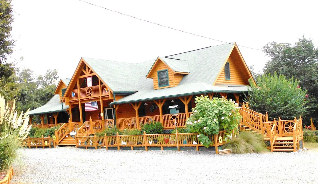LOG HOME 6920 SQUARE FEET-CUSTOM BUILT IN 2003- 6 BEDROOMS 4 BATHS- 2 BEDROOMS 1 BATH AND DEN UPSTAIRS, 2 SPLIT-PLAN BEDROOMS 2 BATHS ON MAIN FLOOR, GREAT ROOM WITH FIREPLACE, LIVING ROOM, SEPARATE DINING ROOM, BREAKFAST ROOM, KITCHEN WITH GRANITE COUNTERTOPS AND ISLAND, CARPET AND HARDWOOD FLOORS, LARGE LAUNDRY ROOM WITH FOLDING TABLE AND WASHING SINK, FULLY FINISHED BASEMENT INCLUDES 2 BEDROOMS (POSSIBLE 3 BEDROOMS), BONUS ROOM, DEN, HUGE WORKSHOP WITH STORAGE, - BASEMENT COULD BE MADE INTO A SEPARATE APARTMENT,- ROCKING CHAIR FRONT PORCH, BALCONY OFF OF DEN UPSTAIRS OVERLOOKS FRONT YARD , DECK COMPLETELY SURROUNDS HOME, SETTING IS PRIVATE AT THE END OF THE ROAD ON TOP OF A MOUNTAIN ALL ON TWO ACRES,INCLUDED IS A SCREENED GAZEBO WITH A FENCED LANDSCAPED YARD ALL TYPES OF FLOWERING PLANTS, TREES AND BUSHES, - LOCATED ABOUT 45 MINUTES SOUTH OF THE AIRPORT IN UPSON COUNTY NEAR THOMASTON, GA.