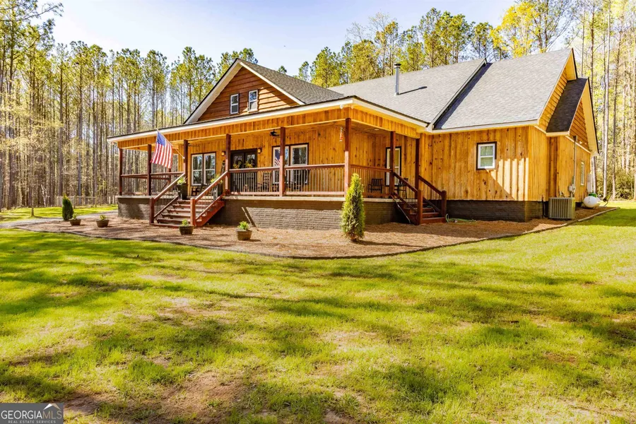 **5 acres with custom built barn!** This INCREDIBLE, custom built, LIKE NEW craftsman home has all the GORGEOUS detail you've been searching for and SO MUCH MORE! The vaulted ceilings in the living room are covered with beautiful tin, and the stone fireplace gives a grand feel to the entire room. With custom cabinets, quartz and butcherblock countertops, and brand-new stainless-steel appliances, the BEAUTIFUL kitchen opens into the large living and dining room. Matching custom cabinets continue into the separate wet bar. The owner spared no expense with this modern, luxurious home. There is a tankless water heater to heat the entire house and an additional tankless water heater just for the kitchen sink. This new home is modern while also having a sought-after rustic, farmhouse feel. In the owner's suite, you will find a large bedroom with a tastefully decorated bathroom complete with a beautiful tile shower and a large, freestanding bathtub. The HUGE owner's closet is as big as a bedroom! Also on the main floor, you will find another bedroom, a full bathroom, a beautiful half bath, and a large closet that has been reinforced to be a storm shelter. Upstairs, there is an additional bedroom and additional space to add two more bedrooms and a bathroom. Outside, the lovely, wrap-around front porch STUNS with incredible woodwork, producing loads of curb appeal and creating the perfect covered area to enjoy the beautiful southern days. There is plenty of storage between the attached garage and the carport. The outdoor kitchen and pergola are added touches that make this luxurious home even more special. No detail was overlooked and no expense was spared with this UNBELIEVABLE custom home! Call today to schedule a private showing!