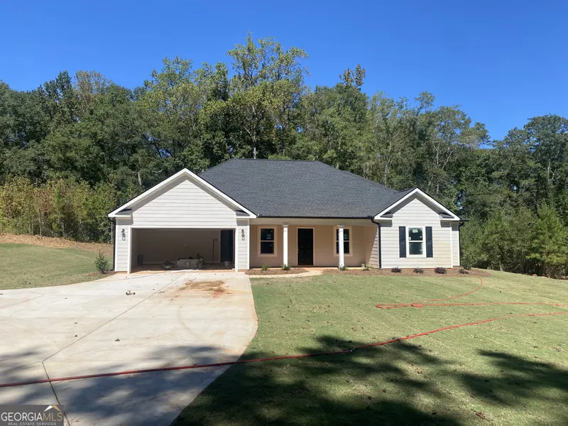 New construction ranch in rural Upson County/Yatesville on a beautiful 3.1 +/- acre lot away from it all! Offering over 1,900 +/- square feet, 4 bedrooms, and 2 full baths in a one story ranch floorplan, the home features all 4 bedrooms on the main level in a split bedroom plan. Living areas include a family room, designated formal dining area, and a nice island kitchen, all in an open floorplan for easy living and gathering! The kitchen features stainless steel appliances, real wood kitchen cabinetry in white with soft close hinges and upgraded granite countertops. Great split bedroom layout with the primary suite on one side and a hall with the secondary beds and bathroom on the opposite side of the home. All secondary bedrooms feature walk-in closets and one bedroom has a vaulted ceiling! The primary suite features a vaulted ceiling, walk in closet, large vanity with granite countertop, linen closet, and an oversized walk in tile shower. The laundry room is oversized and has ample room for additional storage space. LVP hardwood look flooring is throughout the entire home - no carpet here! The exterior is constructed of sturdy Hardie siding and offers a lifetime architectural roof. There's a 2 car garage with automatic opener and an extra parking pad/turnaround area off of the concrete drive. Enjoy the peace and quiet from the covered front porch or overlook the yard and rear woods with a creek from the covered rear patio with ceiling fan. Both porches have with rustic wood planked ceilings. High speed fiber internet is available through Conexon! Quiet road with very little through traffic in a quiet part of Upson County just outside of downtown Yatesville. Very convenient to Hwy 74 for easy access to Thomaston, Forsyth, and Macon. Use the preferred lender and receive 1% of the loan amount back to use towards closing costs and/or interest rate buy down! Home is complete and ready to close!
