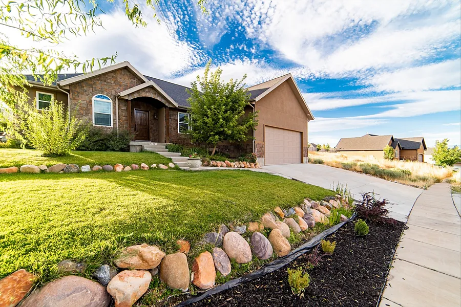 This gorgeous home has a fully finished basement 6 bedrooms and 3 full bathrooms! Main floor has beautiful hardwood floors, vaulted ceilings, and office/den. Kitchen has granite counters and knotty alder cabinetry. French doors open to the backyard. Basement has spacious family/game room and wet bar with space for mini fridge. Fully landscaped. Minutes from I-15. Square footage figures are provided as a courtesy estimate only and were obtained from the county records. Buyer is advised to obtain an independent measurement.