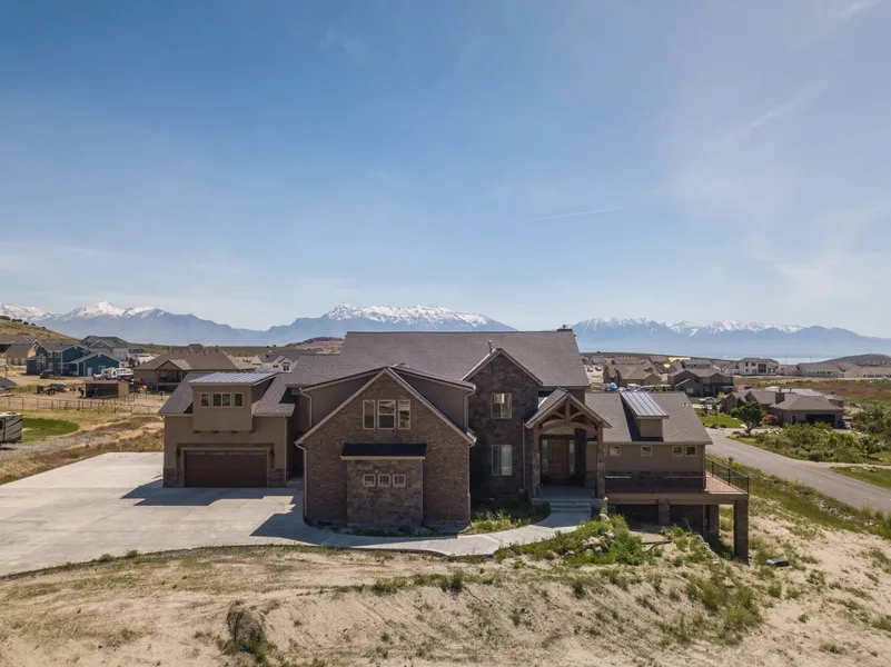 Must see inside this beautiful spacious home with open floor plan showcasing sweeping lake and mountain views! This 9 bedroom, 5 bathroom massive home with 4 over-sized garages and 2 bonus rooms offers you over 11,500 square feet of generous space to enjoy. Wake up each morning to stunning sunrises over the east mountains, work out in the home gym, relax in the home theater, and gather in the large kitchen and living area with family and friends. Huge wraparound deck for outdoor gatherings and expansive walk-out basement with many options for fun and entertainment. The natural landscape with horse property rights has been accounted for in the appraisal and is a 1.1 acre blank canvas ready for your touch! Located in the quiet, growing community of Eagle Mountain just 15 minutes from Silicon Slopes and I-15. Filled with natural light...