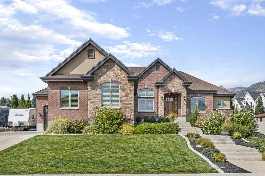 An immaculate, well-planned custom home with incredible finishes and attention to detail throughout! On a quiet street, surrounded by beautiful custom homes with mountain views, this south facing property is an ideal setting to enjoy the fully landscaped and fenced-in backyard. Whether you are curling up next to the ceramic glass Heat n Glo gas fireplace that controls the temperature so you dont have to, or entertaining in the well-designed kitchen, which includes a convection double oven and gas stove, this home offers comfort and quality. A grand foyer with 12 feet ceilings and elegant crown molding, a private formal living room, granite countertops and plantation shutters throughout, and a grand main-floor master suite with an oversized bathroom and large walk-in closet with built in shelving, this home is a delight! You will find even more living space in the unfinished daylight basement, where there is ample storage, and although partially framed and ready to finish, you can create the space to your liking. The garage is oversized and can accommodate a boat; it includes a hot/cold spigot and work space. The brick and stone exterior includes a precast concrete window sill and rollock with every window. Dont miss out on this beautiful home!
