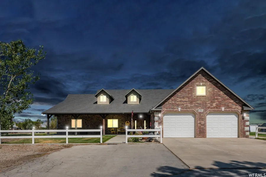 Custom, single level, all brick ranch home with just over seven acres in highly sought after, Lake Shore, UT. Outside of the home, you will enjoy nights around the fire pit, an east facing porch to watch the beautiful sunrises coming over the mountains, a west facing patio to enjoy the sunsets, a mini motorcycle track, horse corals and a riding arena, approximately 3.5 acres of pasture, a fully landscaped yard, and so much more. Inside of the home boosts custom built-ins in the living room, a pellet stove that heats the home with little help from the heater, beautiful brick/rock built in sitting in the living room, an open living concept, high vaulted ceilings throughout, over sized bedrooms, custom concrete stamped flooring, an attached tandem car garage. The master bedroom features a private fireplace, his and her walk in closets, and a separate jetted tub & shower. No need to worry ab...