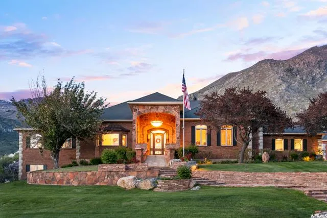 Located across from the famed Lambert Park just 20-minutes from I-15 and Silicone Slopes, this is one of the most beautiful homes you will find in any luxury price point. It is also located within Lone Peak High School boundaries and is just minutes from American Fork Canyon. Whether we are talking about the quality and care of construction, the placement of the home on the one-plus acre lot, or the views of some of the most spectacular sections of the Alpine Mountains with lake views or the ease of access to mountain biking and hiking trails right at your doorstep, this home commands attention! This beautiful all-brick masterpiece nestled in one of Utah's finest neighborhoods boasts over 6,000 square feet that offers Alps-like views and supreme privacy simultaneously. The entryway and the formal living and dining rooms feature luxurious parquet flooring finished in a versatile light-oak. This look hearkens back to historic times of grandeur and grace that is rarely seen in homes today. Adjacent to the formal space is a chef's dream kitchen including leaded-glass cabinetry, dental and crown moldings, and marble floors that you would expect with this newly-remodeled kitchen. Additional features include a gorgeous stainless steel Viking range, microwave, Bosch dishwasher, and a cabinet-faced double-door Sub-Zero refrigerator. Make no mistake, this is not your average home. No detail has been missed with such luxury appointments as marble flooring, granite and onyx countertops, cut-glass door knobs, stained-glass windows, and solid hardwood interior doors. Special living space features include a sunroom for morning meditation, an expansive home office with beautiful hardwood cabinetry boasting a picture window that elegantly frames an unobstructed view of "Lone Peak Mountain," an exercise room (that can easily be converted to a home theatre), and a lower living area with walkout access. Entertaining is made easy on a Trex deck with over 2,000 square feet that provides expansive mountain views and a hot tub for unwinding anytime of the year. If you have a green thumb, you'll love the green house which is a perfect place to tend to your favorite flowers, herbs and other plants through the year. But it doesn't stop there. The landscape of this beautiful property has been intentionally designed to offer pleasing colors and aesthetics throughout the year with grow boxes, flagstone pathways, pine, apricot, plumb and apple trees, as well as berries and lilacs for an elegant and unique touch. Garage space is plentiful with an attached two-car garage and a huge detached four-car heated garage that features a breezeway and oversized garage doors. Whether you have toys or just want a workshop or both, the sky is the limit here. The home includes paid-off solar panels, 500 gallon underground propane tank and the hot tub located adjacent to the rear deck.