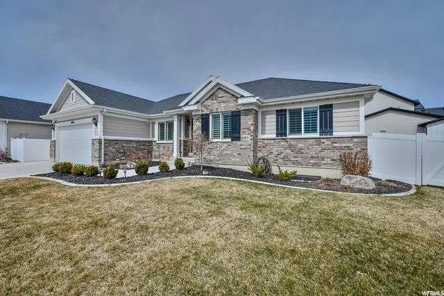 Beautiful single level living home with fully finished basement in the highly desired Holbrook Farms Subdivision (See attached Mapleton Flyer). This home is on a corner lot with mountain views and has a ton of upgrades throughout! This home has a large open concept living and kitchen space with the living room that features vaulted ceilings and a beautiful fireplace and the kitchen which has beautiful cabinets, quartz countertops, and a gas range. The large master suite has not only vaulted ceilings but also a walk in closet. The fully finished basement boasts a large family room, and massive bedrooms. The backyard has huge side yard but also a deck, perfect for relaxing on during the warm summer months, a shed for storage and a hot tub to relax in. Buyer to verify all info and MLS data including, but not limited to: schools, square footage, acres, all HOA info, etc....Information is not...