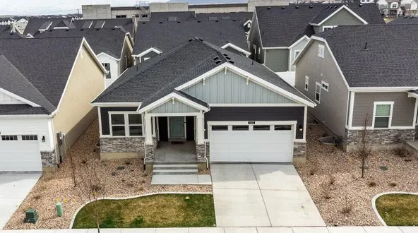 Gorgeous Holbrook Farms Rambler! This stunning home boasts a beautiful layout with all the best finishes and is perfect main floor living. You'll love the convenience of having the laundry room on the main floor so doing laundry will be a breeze. The open floor plan and abundance of natural light make the comfortable great room a perfect place for entertaining family and friends. The chef's kitchen is a dream, featuring quartz counters, stainless appliances, gas oven/range, island with seating, and upgraded white cabinets with soft close cabinet doors and drawers. The spacious owner's suite is a true retreat with a relaxing grand ensuite master bathroom that includes a glass shower with a separate garden tub and a huge walk-in closet. Additional features of this beautiful home include 9' ceilings throughout, a deck and patio, and a modern metal stair railing. The unfinished basement is designed for 3 additional bedrooms, one additional full bathroom, and a family room, providing ample space for your family to grow. Holbrook Farms is conveniently located right off 2100 North and only 5 minutes from the Mountain View Corridor and just minutes from I-15 freeway, Silicon Slopes, Traverse Mountain Outlets, the Jordan River Parkway, shopping, dining, Thanksgiving Point, movie theaters, museums, golfing, Utah Lake, and so much more! The new primary children's hospital that is under construction is only a few blocks away! This stunning home is approximately a 30-minute drive to downtown Salt Lake City and SLC International airport. Square footage figures are provided as a courtesy estimate only and were obtained from the county records. Buyer is advised to obtain an independent measurement.