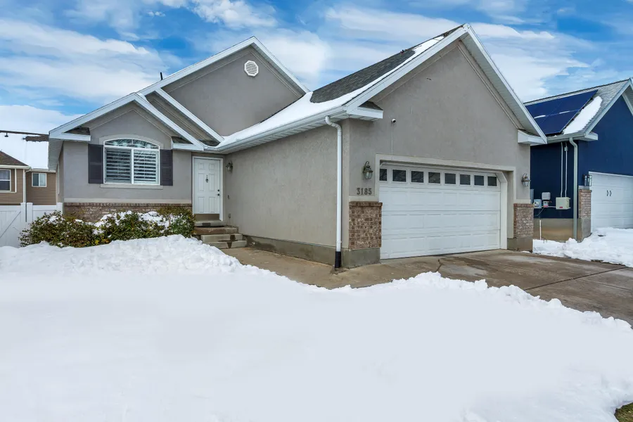Beautiful home located in the heart of the Silicon Slopes! As you enter, you'll immediately notice the spacious and inviting great room, complete with vaulted ceilings, large windows, and beautiful plantation shutters that let in plenty of natural light. The kitchen features custom cabinetry, solid surface countertops, and newer stainless steel appliances, including a freestanding double oven. The main level also includes a master suite with a walk-in-closet and an en suite bathroom, as well as two additional bedrooms and a bathroom. Downstairs, the fully finished basement offers plenty of space for entertaining or relaxing in the a family room, and includes 3 additional bedrooms and a full bathroom. Outside, the covered deck and patio provide the perfect space for enjoying the beautifully landscaped backyard, which is fully fenced for privacy and safety. And don't forget about the bonus...