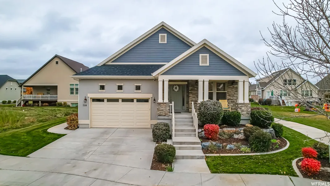 *Be sure to view the 3D tour and 1st person fly through* Welcome to this stunning showpiece located in Mapleton's highly sought after community of Harvest Park. This award winning community abounds with walking trails, green spaces, incredible mountain views and gorgeous homes! Hate shoveling snow and mowing grass? You won't ever have to do that again-it's all taken care of! This beautiful home is loaded with upgrades including a fabulous chef's kitchen with custom cabinets, gas cook top and wall oven, huge island and walk-in pantry. You won't miss a thing as you entertain in the vaulted gathering space connected to the kitchen. The walk out covered deck serves as an extension of the entertaining space. The laundry is conveniently located next to the spacious primary suite which is complete with extra large soaking tub and separate shower. Massive basement family room with plenty of spac...