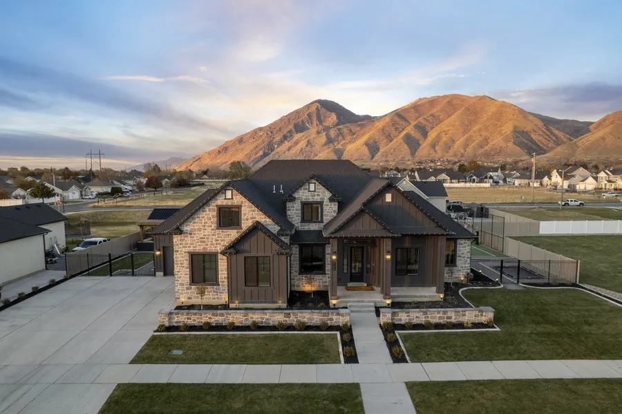 Outside, the professionally designed outdoor entertaining space is truly a dream. It includes a perfectly arranged outdoor kitchen, a recently completed sports court, a dedicated area for grow boxes, and a fully fenced yard. This south-facing home is nestled in a quiet cul-de-sac, offering privacy and breathtaking mountain views.