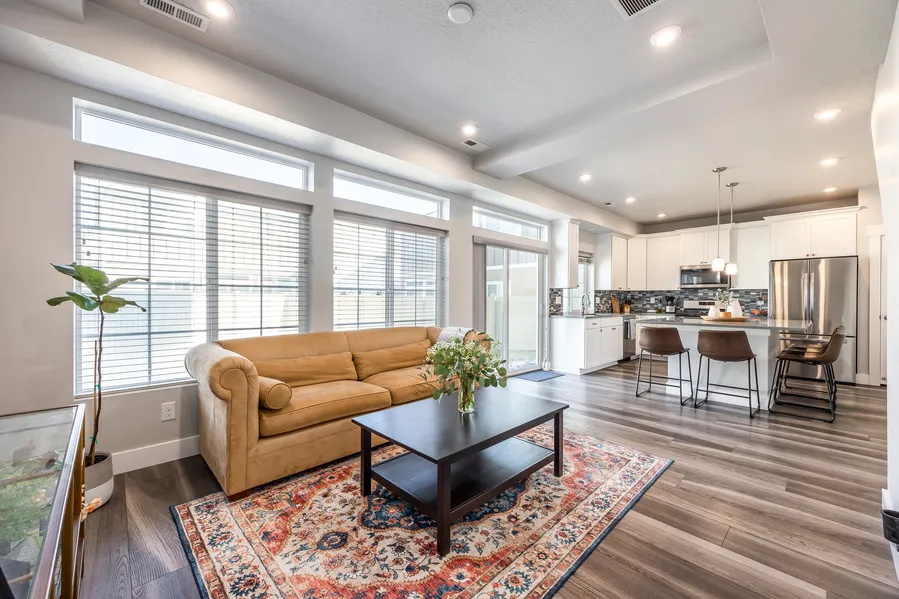 Welcome home to a beautiful residence in the desirable Holbrook Farms neighborhood! Featuring an open floor plan with high ceilings and stunning tray ceilings in both the entry and living room, this home is designed to impress. Have an electric car? This home is ready with a Tesla EV Charger and 18 solar panels, creating a 6.9kw system with 12,911 kWh in Annual Production. The spacious kitchen boasts quartz countertops, white cabinetry, and a chic tile backsplash, along with stainless steel appliances that are included. The large island offers ample storage and seating, perfect for gathering with friends & family, while the adjacent living area overlooks the lush green backyard. Natural light floods the home through large windows, creating a bright and inviting atmosphere throughout. The thoughtful layout includes three spacious bedrooms on the same level, including a primary suite with accent tile in the shower, walk-in closet and large windows. A convenient laundry room is located on the bedroom level, just steps from all three bedrooms. Located at the end of a brick paved, quiet cul-de-sac within walking distance to the expansive Holbrook Farms Park, which features 6 pickleball courts, a jungle gym, a swing set, green space, a splash pad, and even a built-in cornhole area – perfect for fun and entertaining. With its blend of on-trend colors, meticulous design, and unbeatable location, this home truly offers it all. Near the new Primary Children’s hospital in Lehi, Thanksgiving Point, Silicon Slopes and all the shops & restaurants closeby.