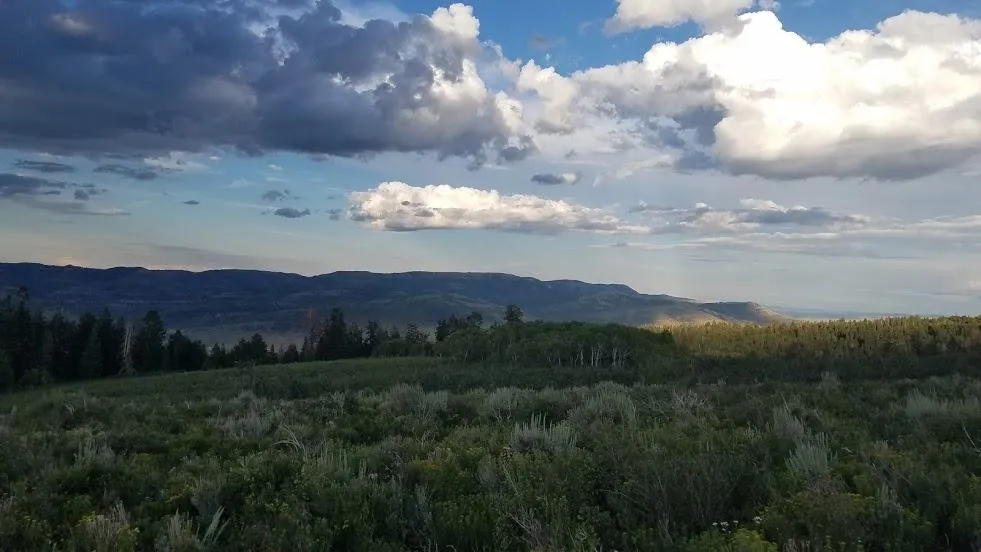 Thick Quaking Aspens with Berry brush north end of lot leading deeper into lot to open space of sage with unlimited private mountain views.