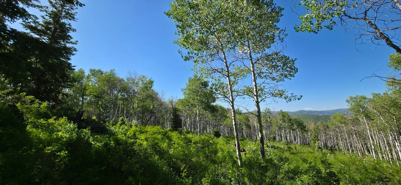 Quaking Aspen, Pine Trees, Open Meadow at the end of a Cul-de-sac. This pristine lot is level to slight grade slope. Gate in picture leads to a closed old road the developer used during construction and now blocked off at both ends from public access. This developer road is on this lot and begins at green gate. The boundary is roughly 2 feet to west of road up to 20 feet at the north end of lot. Water, Power, Phone lines stubbed to lot. Septic and Propane installed by buyers. Lot is tagged with orange tape onto trees as close to estimated boundaries for your walk around this land. Corner boundaries are surveyed as seen in photos. Buyers verify boundaries, acreage and all land information. Lot PIN 39.91457, -111.11118