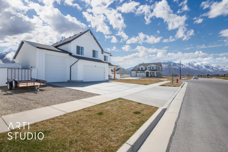 This home is a must see! The sunsets will never be blocked by another home since the city owns the nature area and Legacy Farms Park across the street! This 2023 immaculate home is located in a highly desirable neighborhood on the East side of Spanish Fork. Enjoy a spacious and open feel throughout the main living areas with 9 foot ceilings. The grand gourmet kitchen includes white shaker style cabinets with a large oversized island. The kitchen is equipped with a double oven, quartz countertops, and includes a walk-in pantry. The RV garage give you plenty of space for your recreational vehicle or additional storage. The home has a smart home package that includes advanced technology for enhanced convenience and security. Fully fenced and landscaped 3rd of an acre. Located close to to the park for easy access biking trails and a short drive to local hiking trails. Shopping and dining are just a short 5 minute drive from home. Square footage figures are provided as a courtesy estimate only and were obtained from county records. Buyer is advised to obtain an independent measurement.