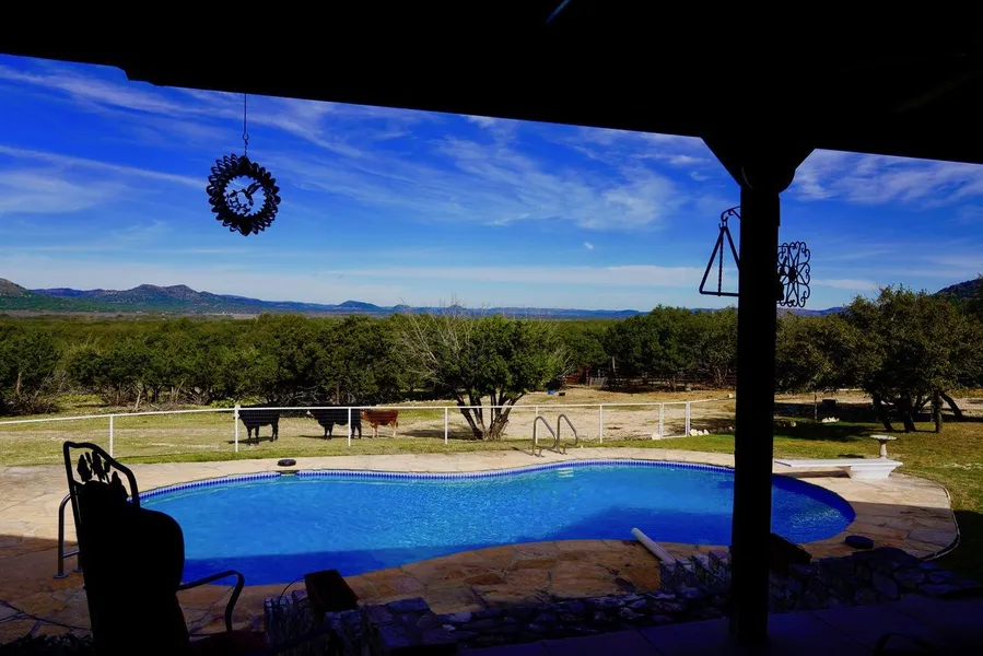 IMPROVEMENTS & HIGHLIGHTS : 3 Bedroom / 2 Bathroom Full Masonry Home and Garage built at the Base of the Mountainside - Inviting Swimming Pool, Flagstone Patio and Pool Cabana - Electric Gate Entrance - Level to Gently Rolling Bottomland - Excellent Views of the Nueces River Valley and Texas Mountains serve as a Beautiful Backdrop - Water Well - Septic - Electric