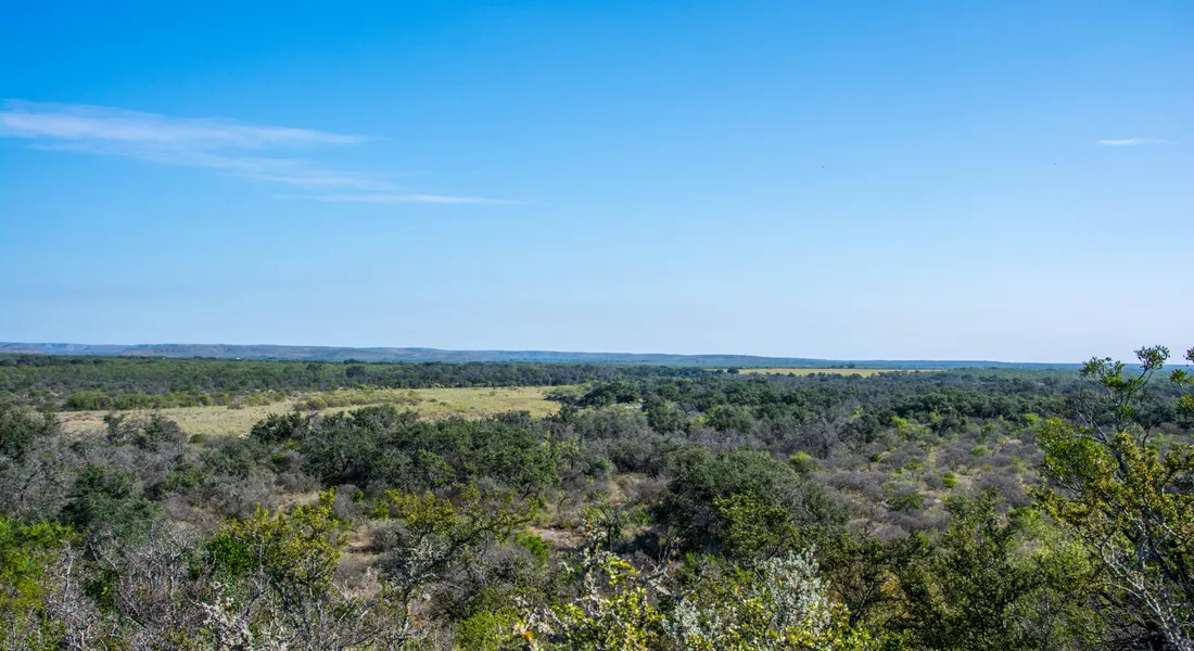The east point of the Hills overlooks an area where the Nueces and West Nueces merge. Some of the most unique limestone outcroppings, bluffs and caves in the Hill country have formed into what looks like a natural rock fortress for hundreds of yards along the base of the Hills. Huge Oaks and Cedar Elms line the fertile base of the bluffs creating a natural park like setting, sheltered from the sun by the towering bluffs and incredible trees. One can only imagine the shelter and security this area provided the long past American Indians that roamed this area. What appears to be remnants of Indian campgrounds and untouched mounds are scattered throughout the ranch all along the high bluff of the river.