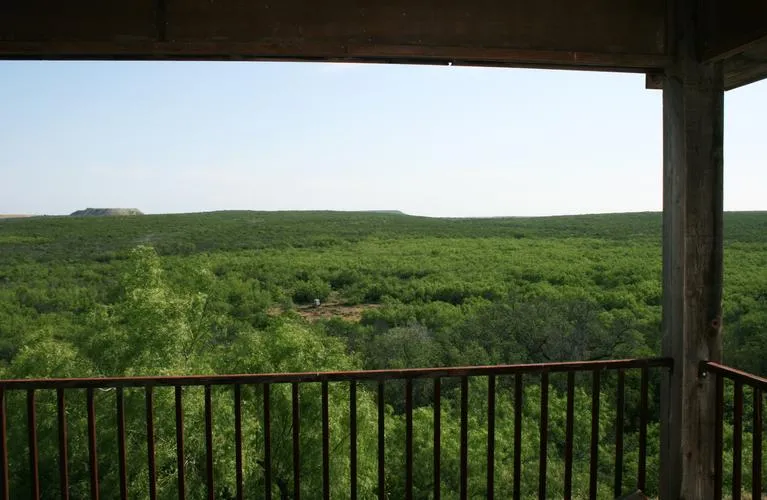 IMPROVEMENTS: A nhandsome, 2-story, 5 bedroom, 3 bath stone exterior residence is positioned on a high bluff overlooking the ranch. The vaulted interior features exposed beams and trusses for lodge atmosphere and a quality built kitchen. A total of 2,847 s.f. of living area combines with a relaxing back covered porch and upstairs balcony that offer serene views. The home was recently built in 2005. A 2000 s.f. barn was also constructed in 2005. This barn is metal exterior with a concrete slab floor and overhead doors. 85% of the perimeter fencing is low fence. 6 feeders, 4 blinds and 2 protein feeders.