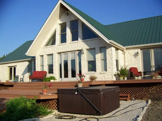 Level, wooded 167 acres with a custom 3 bedroom 2 1/2 bath home built in 2000. Large wood decks on front and back. Secluded private ranch. Ideal for recreation, hunting, weekends or full time residence. There is an additional 30 x 48 garage/shop/bunkhouse combination. Bunkhouse sleeps 10, outdoor BBQ grill area, two separate grape and olive orchards. There is a greenhouse and storage shed. Watch wildlife water at earth tank in front of home in the mornings and evenings.