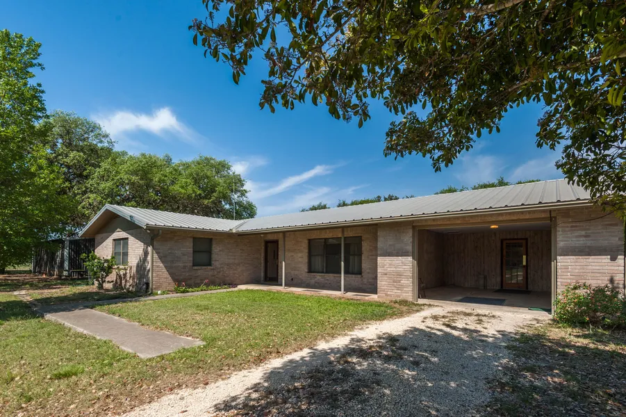 The efficient home is 1940+- square ft on slab, metal roofing and brick siding, offers a large covered porch, concrete walkways, drive in carport, large utility/mud room with sink, large kitchen with wooden cabinets and counters, large open living/dining room, large master with walk in closet, full bath with shower/ tub and 2 spacious guest rooms with full bath. The home offers propane for the kitchen stove and recently updated central A/C for heating and cooli...