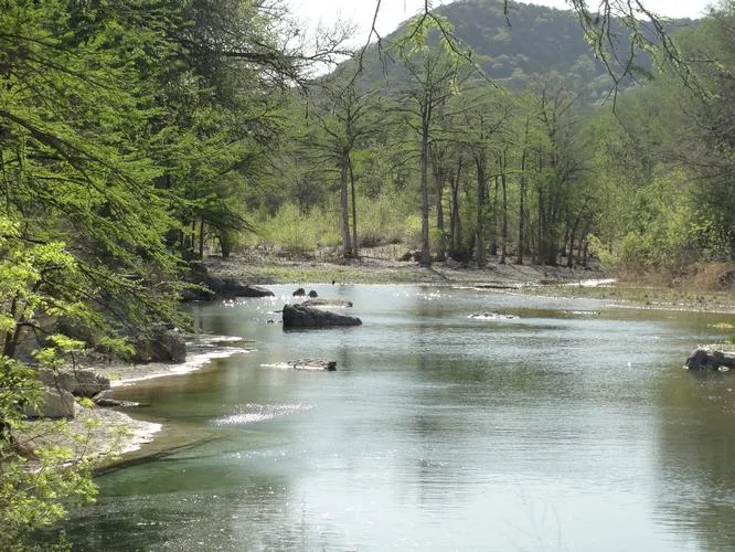 Property #06: 13.8 Acres +/- with approximately 300' popular tubing area of the Frio River, 3/12 undivided interest in 9.044 acre river park and 10.3 acres pasture land. Two story 3 bedroom 2.5 bath log home with rock fireplace. RV shed and hook-up plus separate utility room and outdoor shower. $476,000