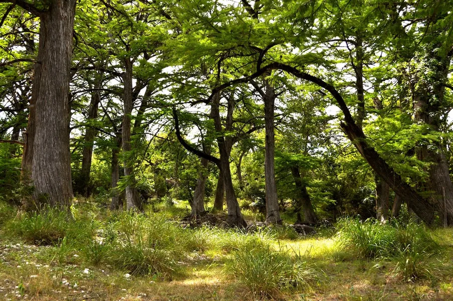 Flourishing Native Grasses, Massive Hardwoods: Live Oak, Cypress, Sycamore, and various plants indigenous to the Hill Country River Region, providing for privacy and are found to be most desirable for free roaming wildlife. Color showcasing Springtime Wildflowers.