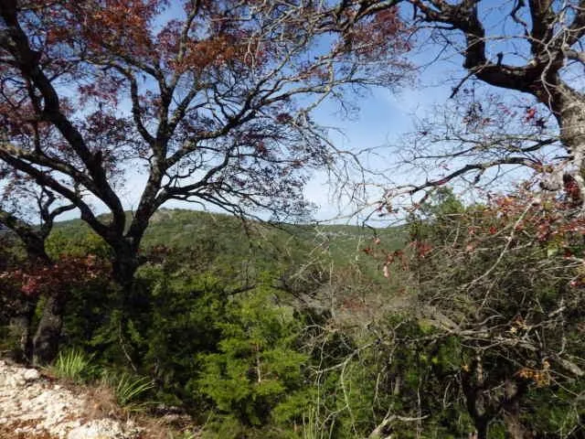 One hillside acre in Frio Canyon Estate located near the popular Concan area and situated behind a locked gate with beautiful Frio River access. This wooded lot is located near the back side of Old Baldy at Garner State Park. Members of this subdivision have access to this 6+ acre private river park on the Frio River where they can stay free of charge as a property owner. The river park includes 13 RV spots with full hook ups, an open air pavilion with restrooms, camping spots with power and a road down the bluff for easy river access. No reservations are required and spots are on a first come basis, typically with spots available even on holiday weekends. Close to live music, unique boutiques, and local eateries.