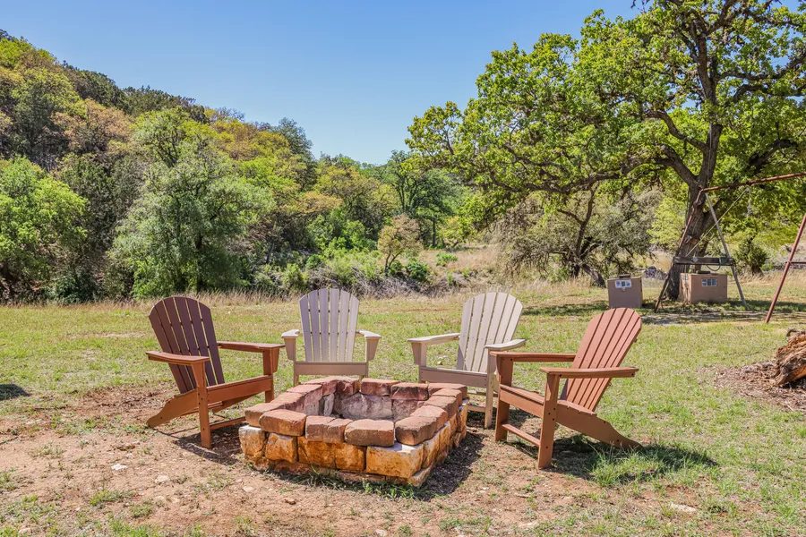 Elevations on the ranch range from approximately 1420 in the creek bottom to 1890 on the top of the highest hill. Over 2 miles of interior ranch roads allow for good access throughout the property. As a nice complement to the extensive hilltops offering massive views there's over 2,000 of both sides of Sycamore Creek. With pockets of water during wet times, this creek is another attractive aspect of the property. The entrance to the ranch is within this creek bottom area and adds instant charm as you enter the front gates. On the east end of the property, situated on the grassy banks of Sycamore Creek is where you will find the camp area. With municipal water and underground electricity in place, the camps lodging consists of 2 travel trailers each secured under a pole barn with metal roof protecting them from the elements. There is a rock paver walkway between the trailers, firepit and parking area and a game cleaning station with water and electricity. Although this camp area is simple and modest, it's the perfect setting for stargazing and campfire storytelling. Surrounding the camp area and scattered throughout the ranch's central valley floor are beautiful hardwood trees including Black Walnut, Buckeye, Sycamore, Live Oak and Post Oak. When the family outgrows current lodging, there are several stunning building sites available, each surrounded by century oak trees. Inquire with listing broker for additional details on the current owners building plans that magnify the property's natural features. This grassy, private valley quickly transitions into steep hillsides then into more open wide hilltop mesas offering forever views over the Frio River watershed.