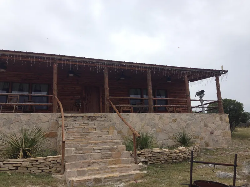 Owners Cabin: This very unique 1BR/1BTH log cabin sits on one of the highest points of this property. The large covered porch across the front of this cabin offers an incredible view of the Dry Devils River Bottom that weaves its way through northern Val Verde County. This cabin also has a small kitchen, jacuzzi tub and a rock fireplace in the living room.