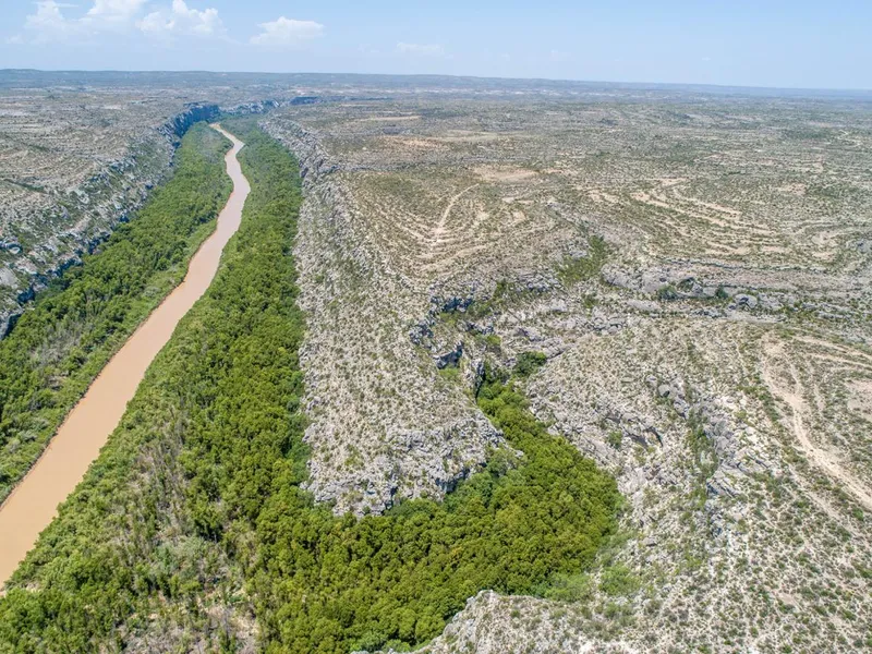 This offering of Lot 15 is 348.01 acres with Rio Grande River frontage. Dos Rios Ranch subdivision is comprised of several unfenced properties with a shared perimeter low fence to maintain the agricultural valuation. The arid, desert-like climate supports various cacti, Texas Grama and other native grasses, mesquite trees, wild persimmon, guajillo, dessert yaupon, paloverde and goatbush. There are spectacular views of the Rio Grande River Gorge from the south end of the ranch. The Trans Pecos area was originally inhabited by primitive Indians 3-4,000 years ago. Their presence can still be found in the numerous caves and burnt rock middens found along the Rio Grande River and deep canyons on the ranch.
