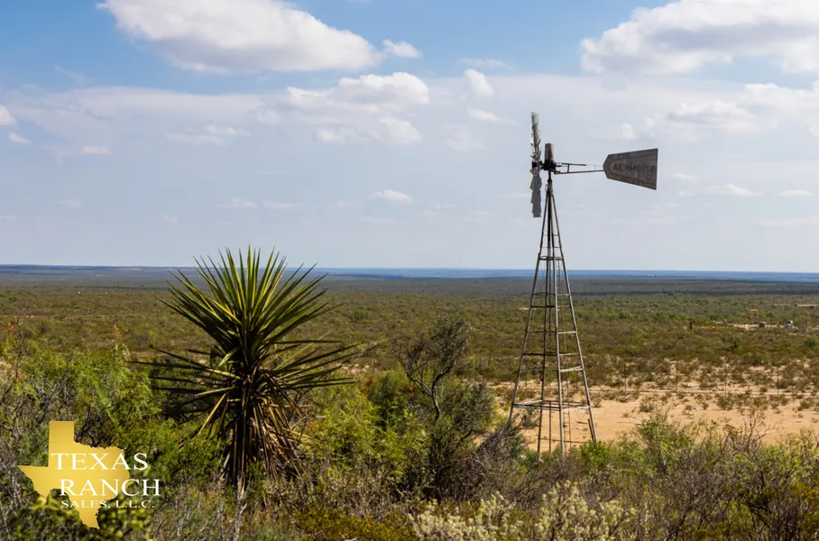 The ranchs land is well-suited to sustain wildlife, with a mix of open pastures and rugged terrain. A year-round pond on the south side is supplemented by solar-powered water troughs, while the north side features a second pond and additional solar and windmill water sources.